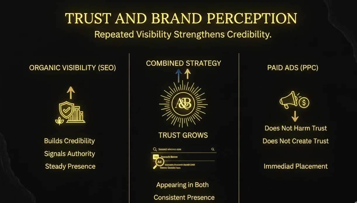 Brands that appear in both organic and paid results often perform better.Repeated visibility strengthens credibility.Trust grows through steady and consistent presence.